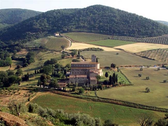 Fourth day: Right after breakfast we'll be heading to Sant'Antimo's Abbey, one of Tuscany's bigger ones, of which it was legendarily said that it was built by Charles the Great. It also was a resting point for pilgrims, and even nowadays, the friars celebrate the holy mass including Gregorian chants. After having attended the mass we'll then be moving on to Montalcino, nice little old town where a marvelous microclimate gives birth to one of the best red wines in the world, the Brunello di Montalcino. We'll have a wine tasting before returning back to Chianciano to have lunch at the hotel. Departure.